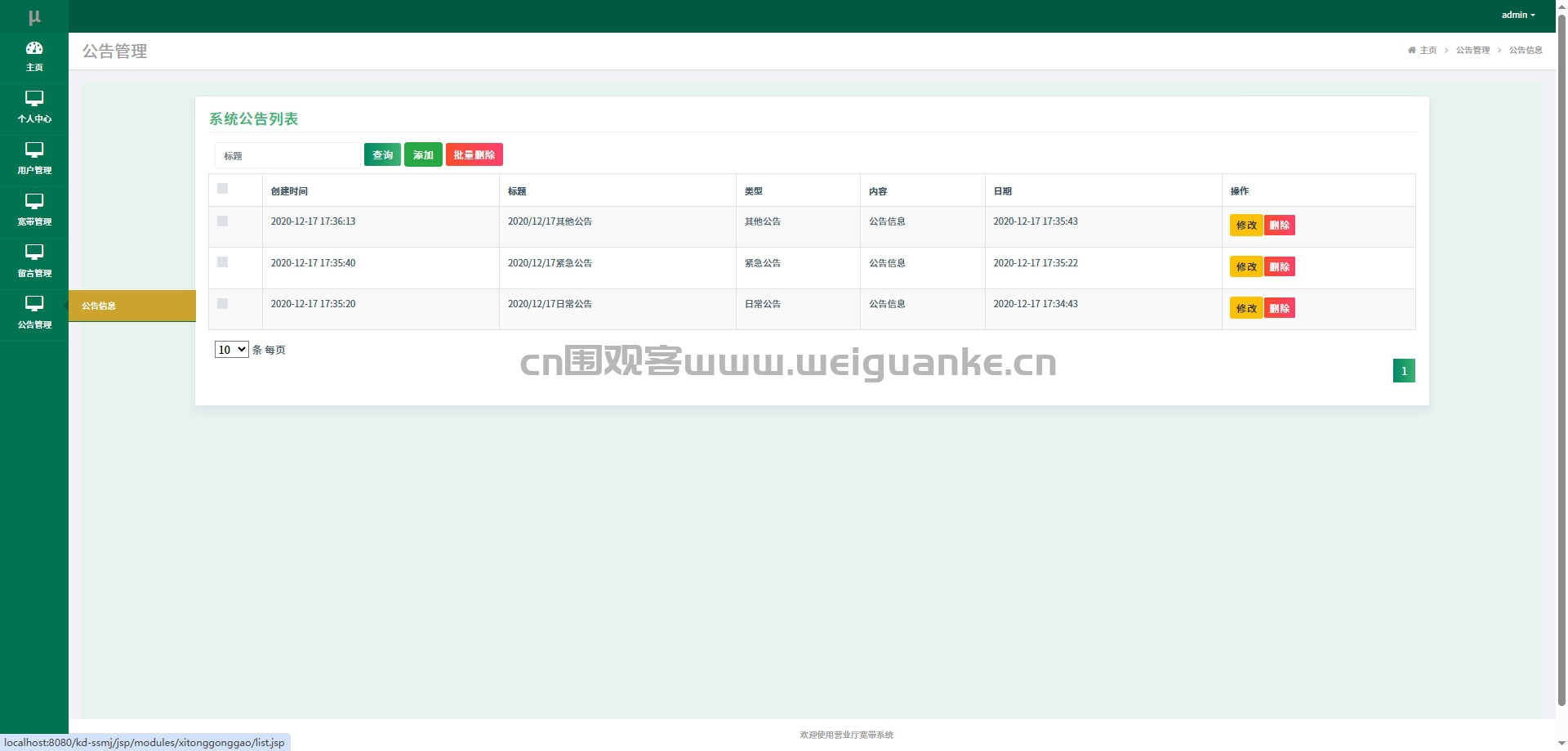 管理员发布、编辑或删除系统公告
