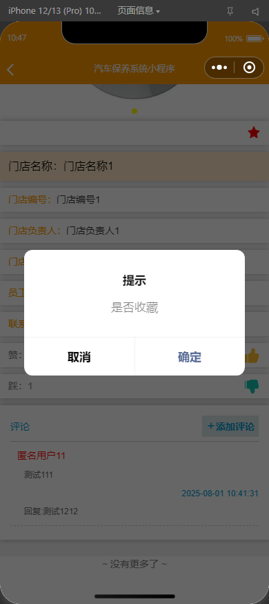 门店信息:用户可查看附近门店信息,包括地址、营业时间、联系方式,支持门店评价和预约。