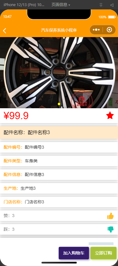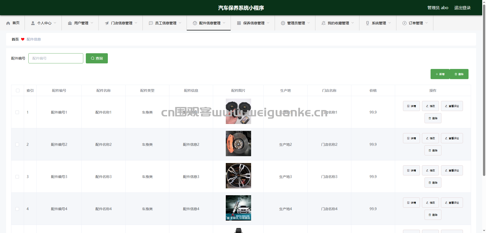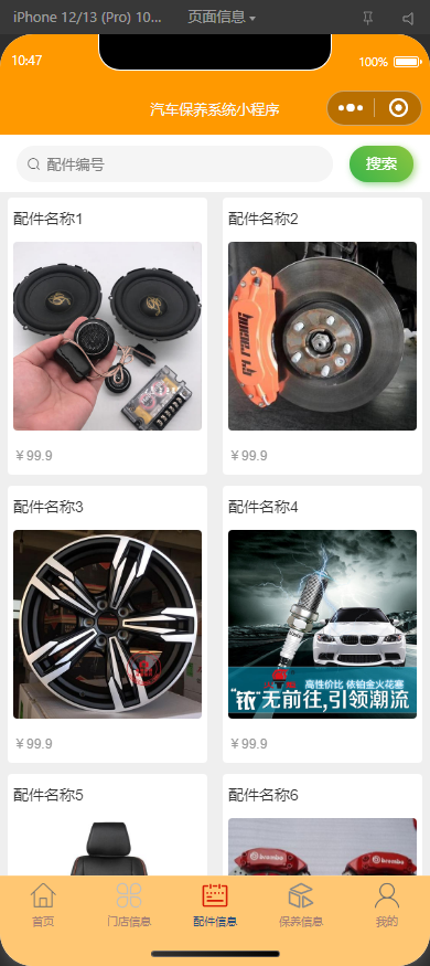 配件信息:用户可浏览、搜索汽车配件,查看配件价格、库存、适配车型等详细信息。