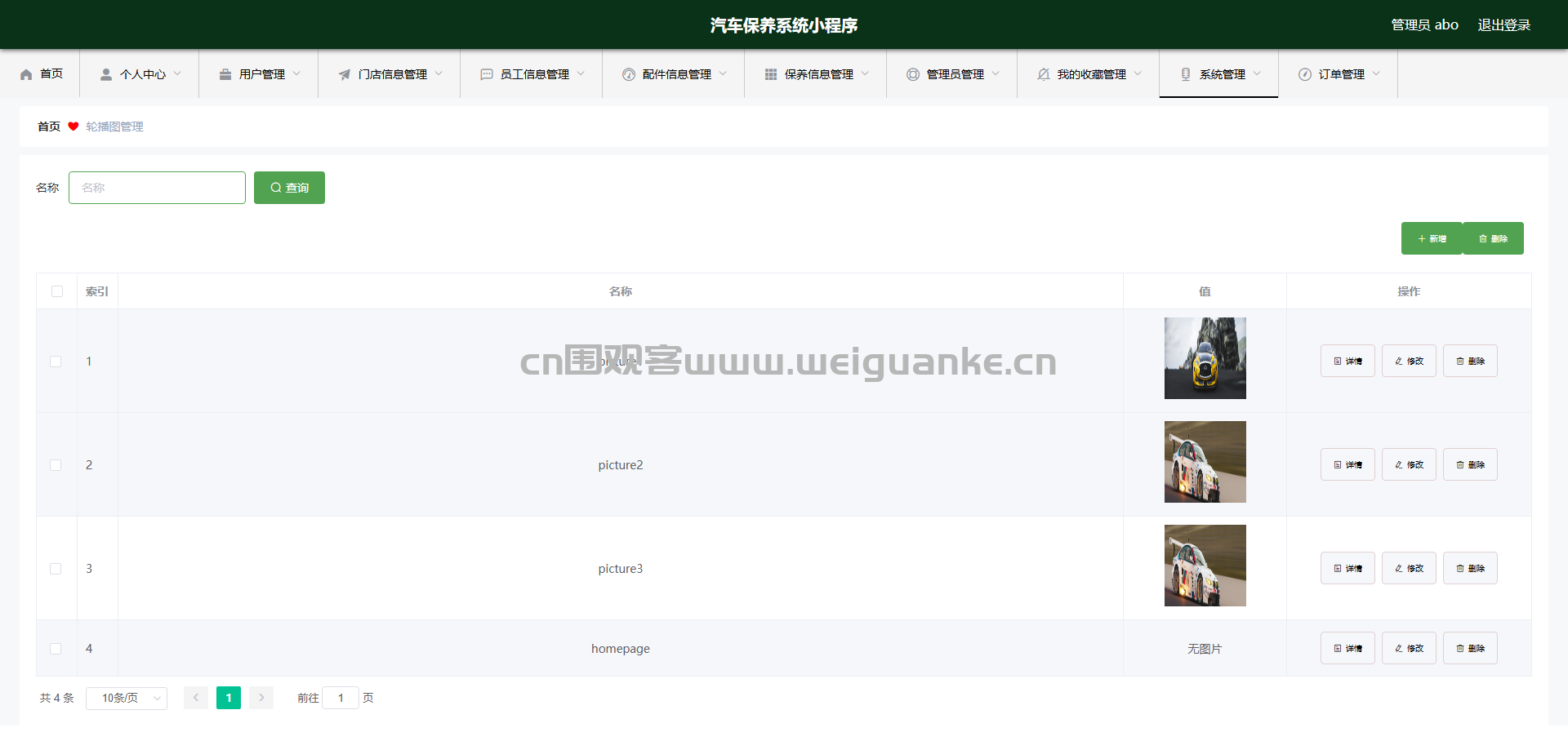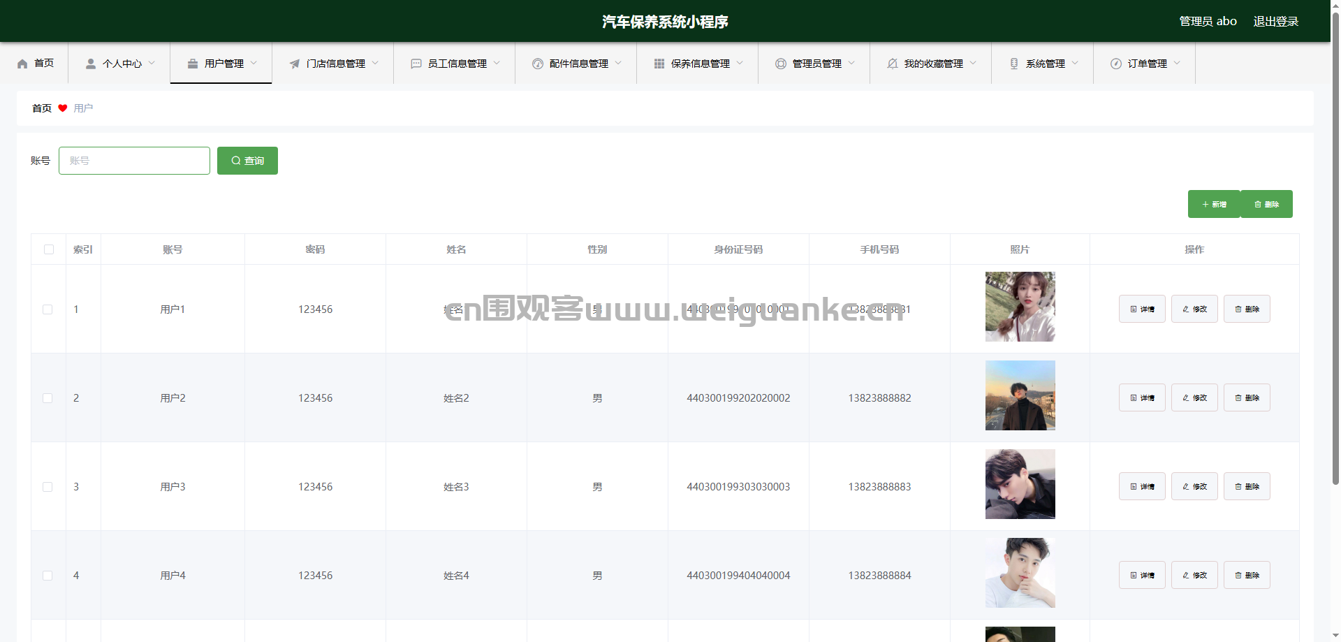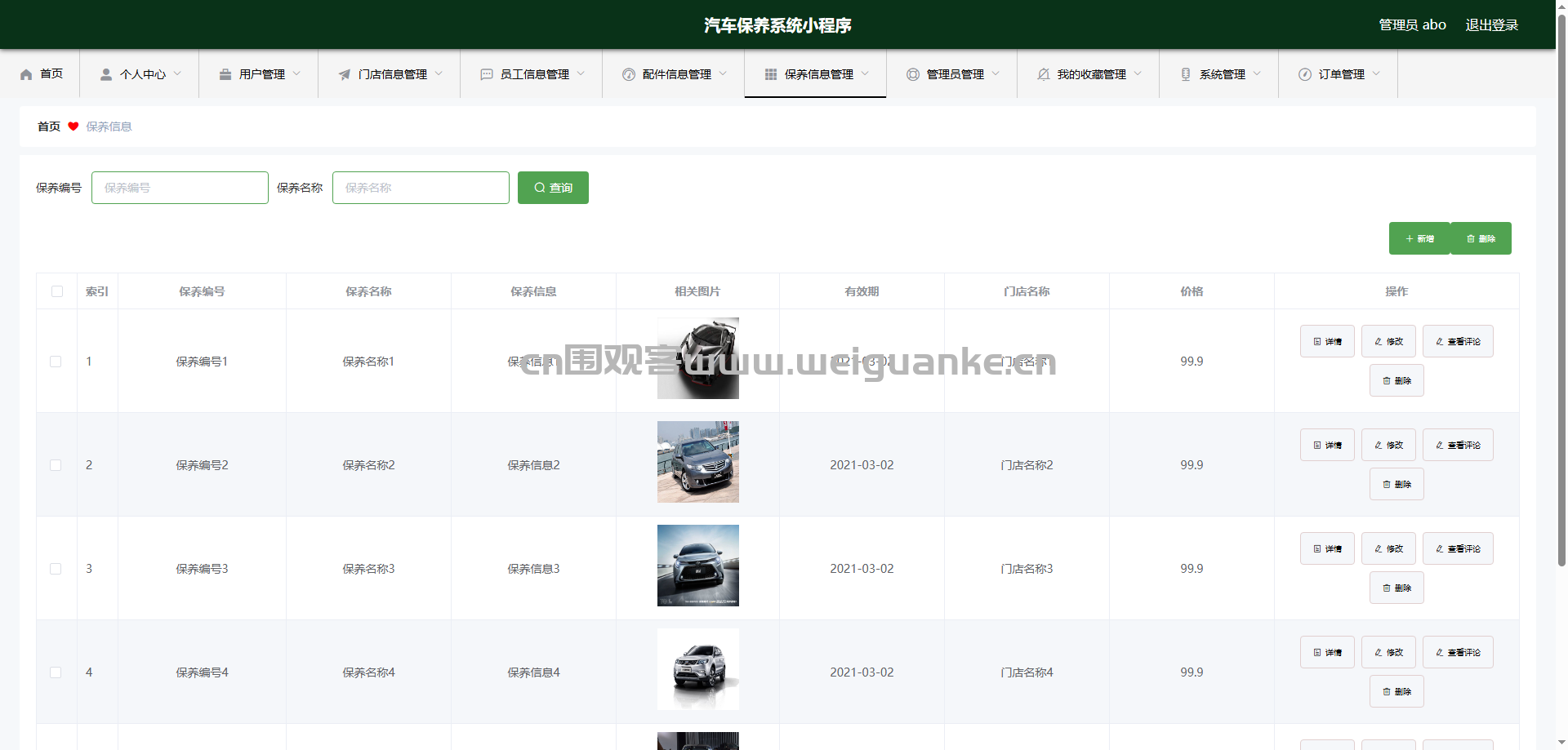 保养信息管理:管理员可添加、修改、删除保养套餐和服务信息。