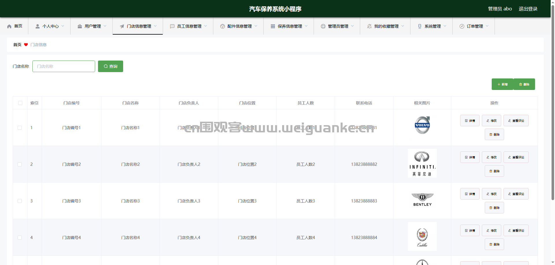 门店信息管理:管理员可添加、修改、删除门店信息。
