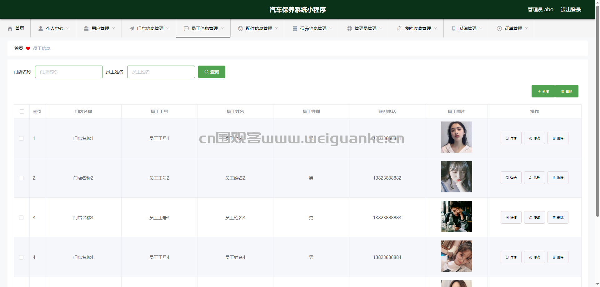 员工信息管理:管理员可管理门店员工信息,包括添加、修改、删除。