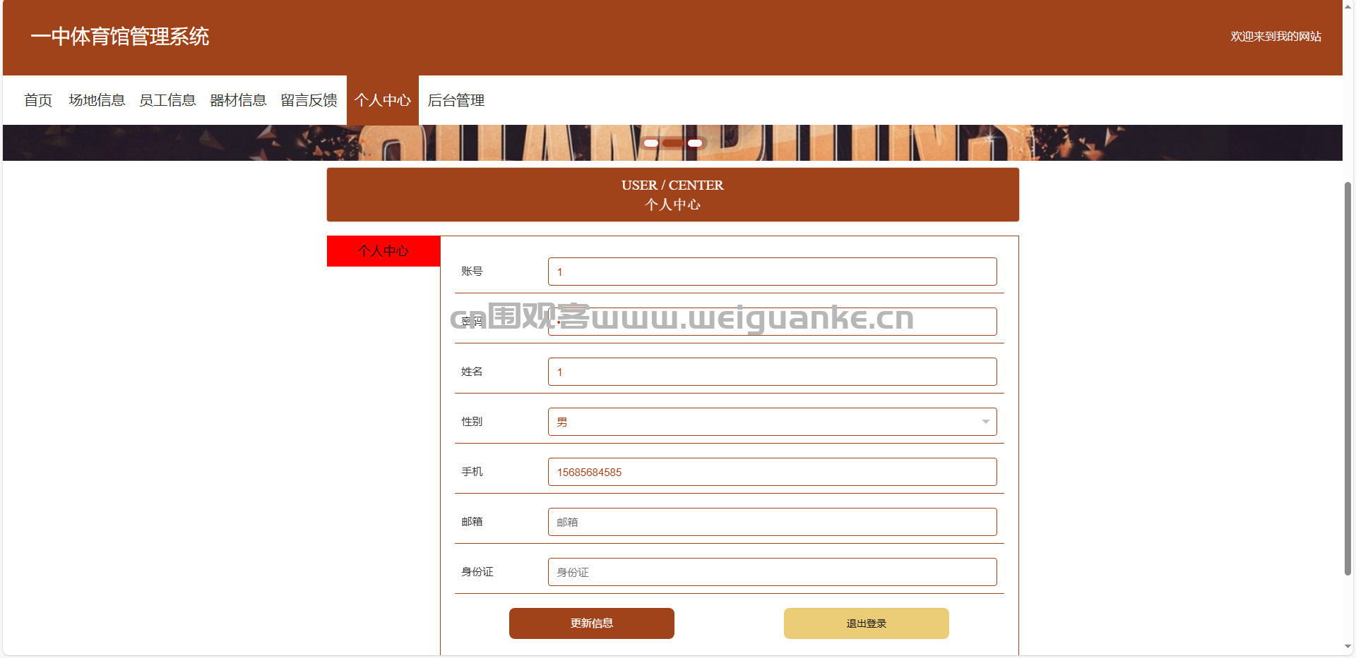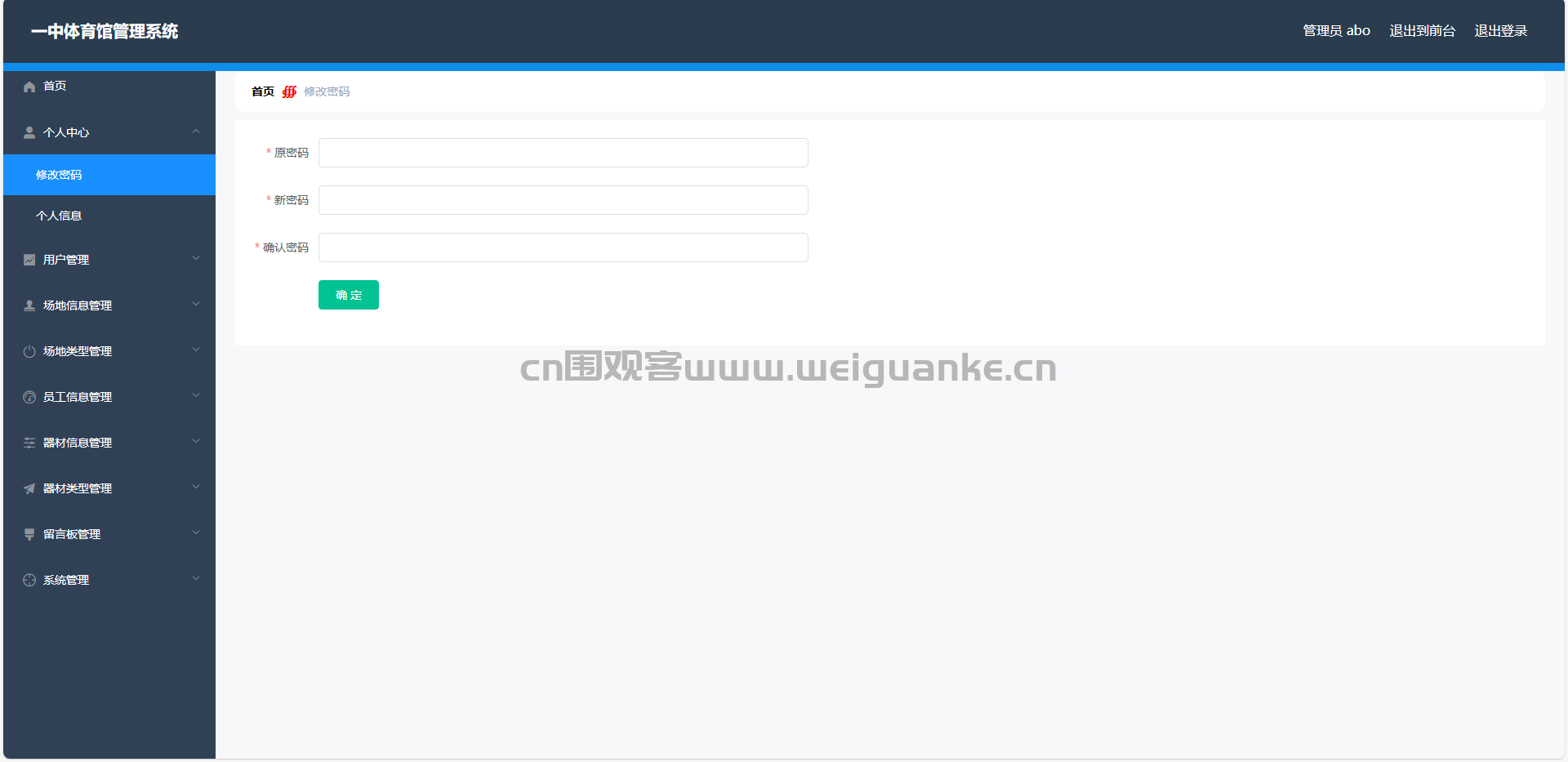 个人中心:管理员可以修改密码和查看个人信息。