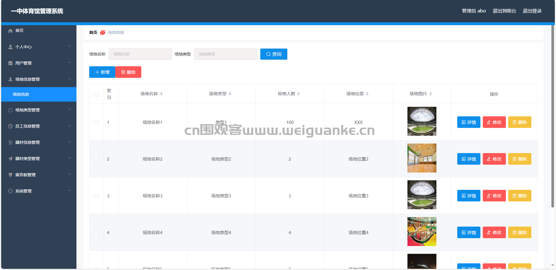 场地信息管理:管理员可以添加、修改和删除场地信息,管理场地预订记录。