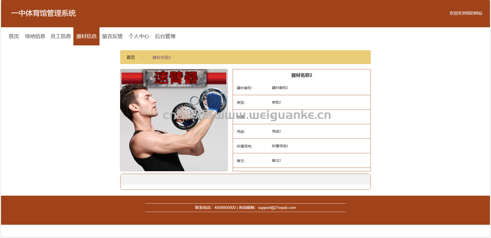 器材信息:提供体育馆器材的详细信息,支持器材借用申请及查询借用记录。