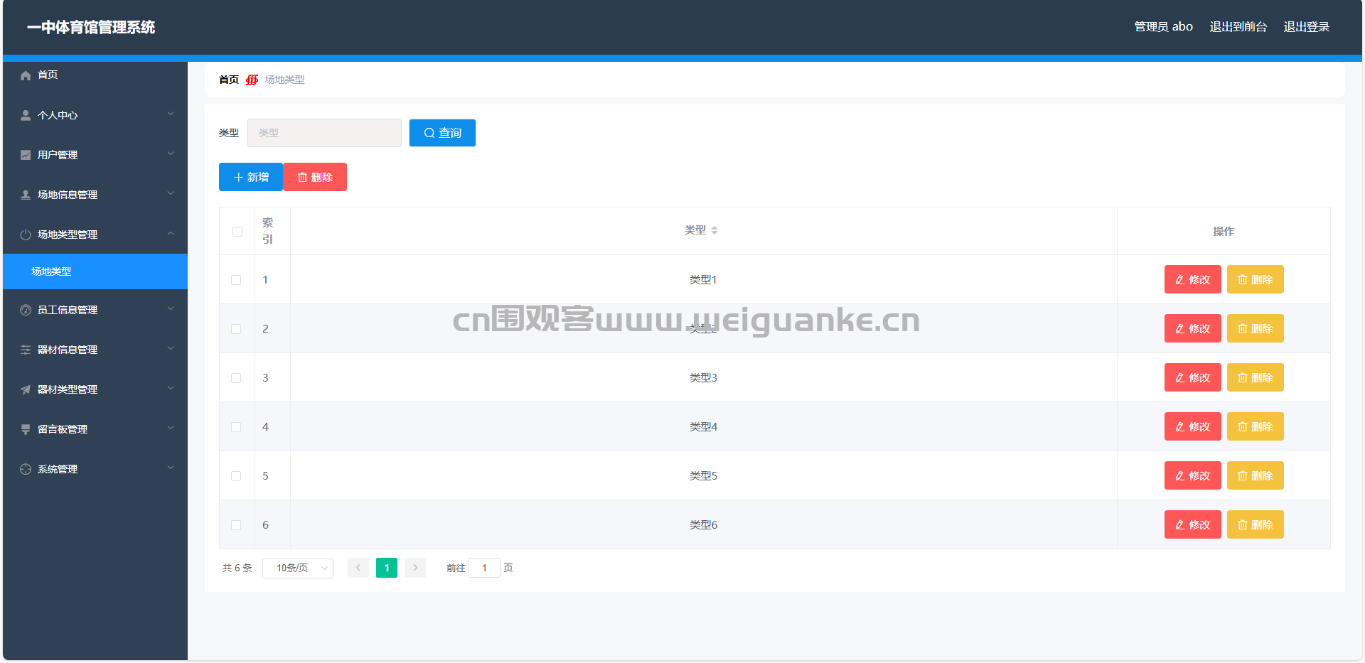 场地类型管理:管理员可以添加、修改和删除场地类型,维护场地分类。