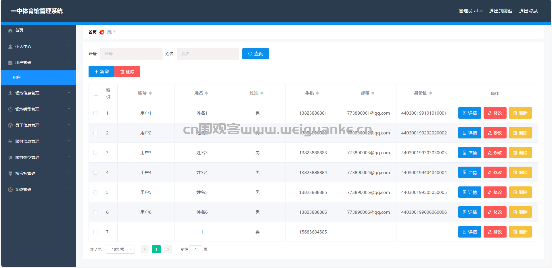 用户管理:管理员可以查看、添加、修改和删除用户信息,管理用户权限。