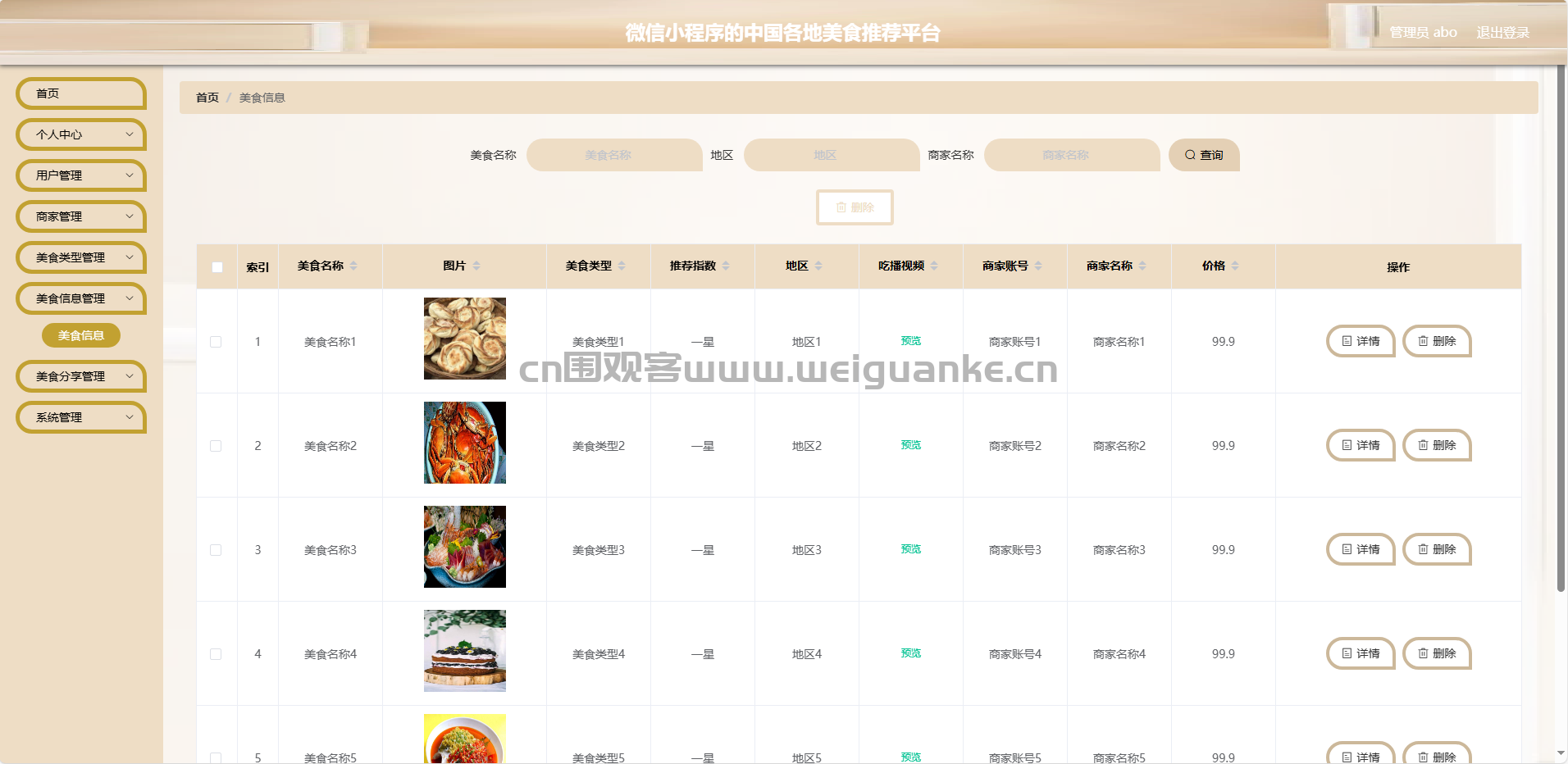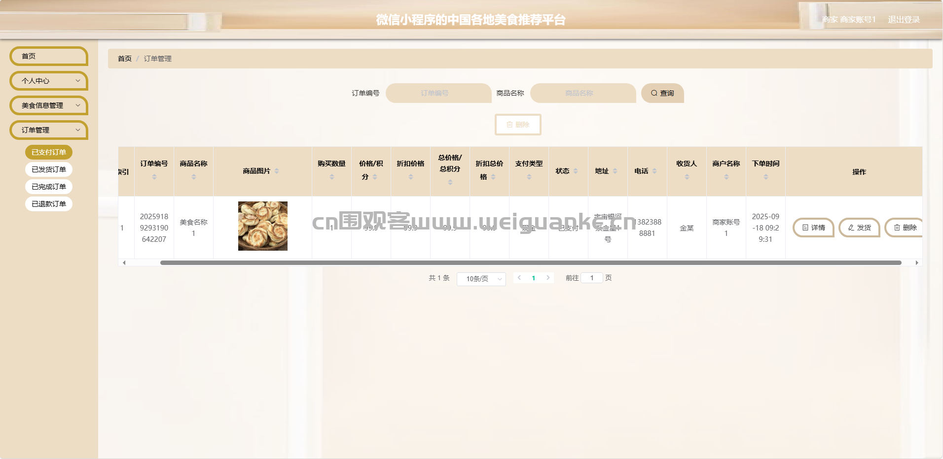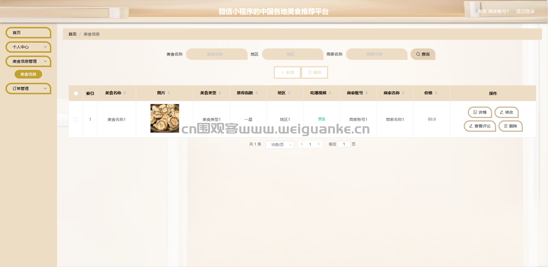 美食信息管理:商家可以添加、修改、删除自己店铺的美食信息。