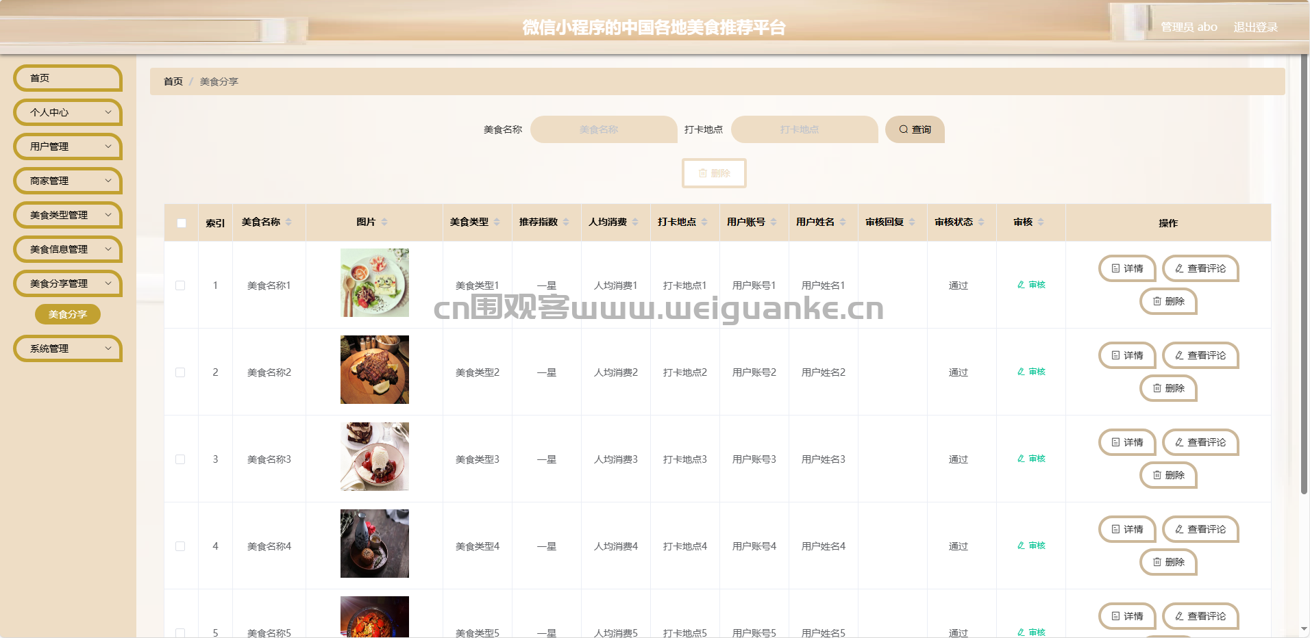 美食分享管理:管理员可以管理用户分享的内容。