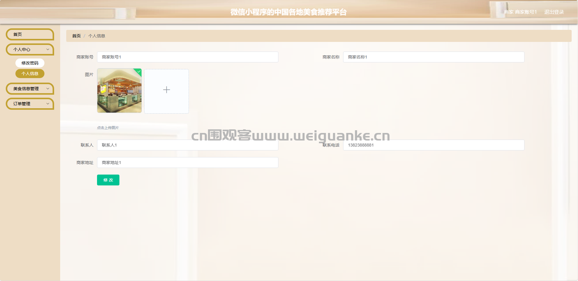 个人信息:商家可以查看和修改店铺的基本信息。