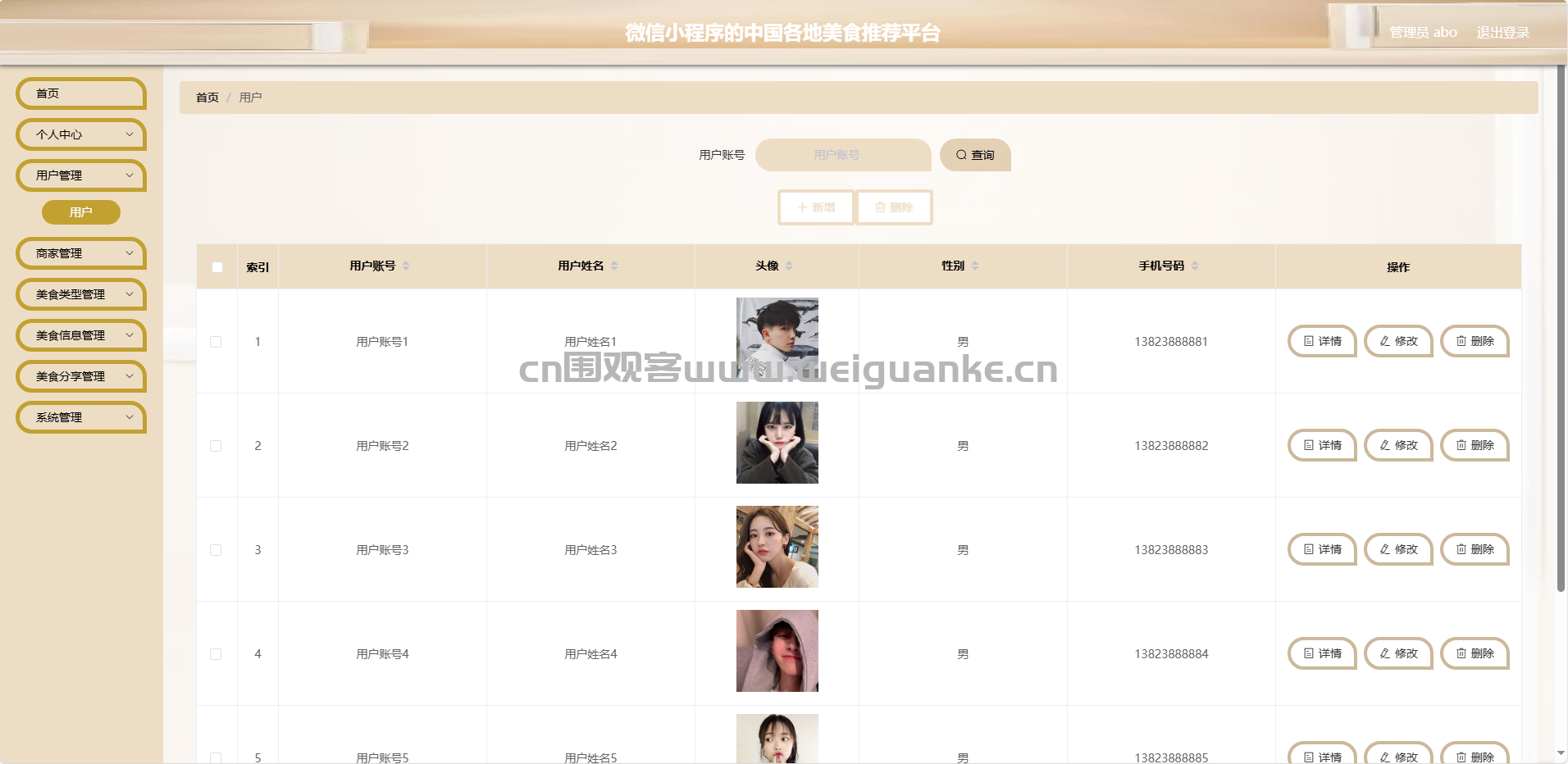用户管理:管理员可以查看所有用户信息,进行用户权限管理等。