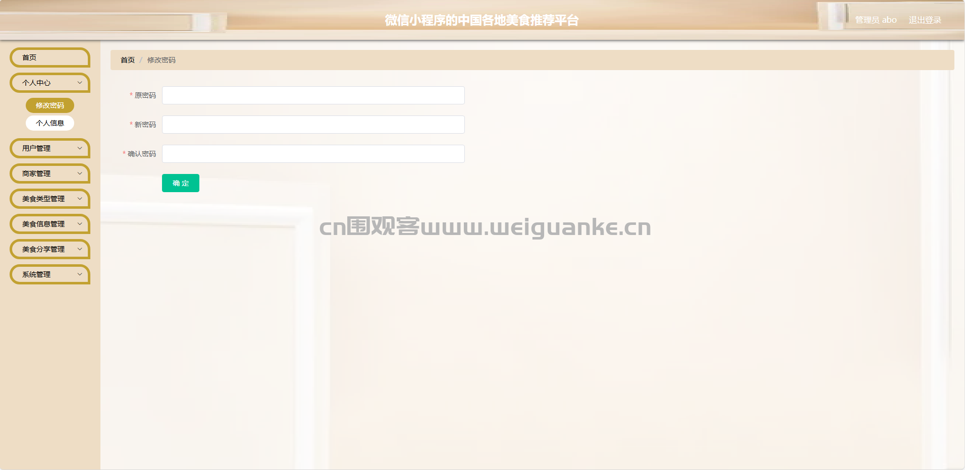 修改密码:管理员可以修改自己的登录密码。