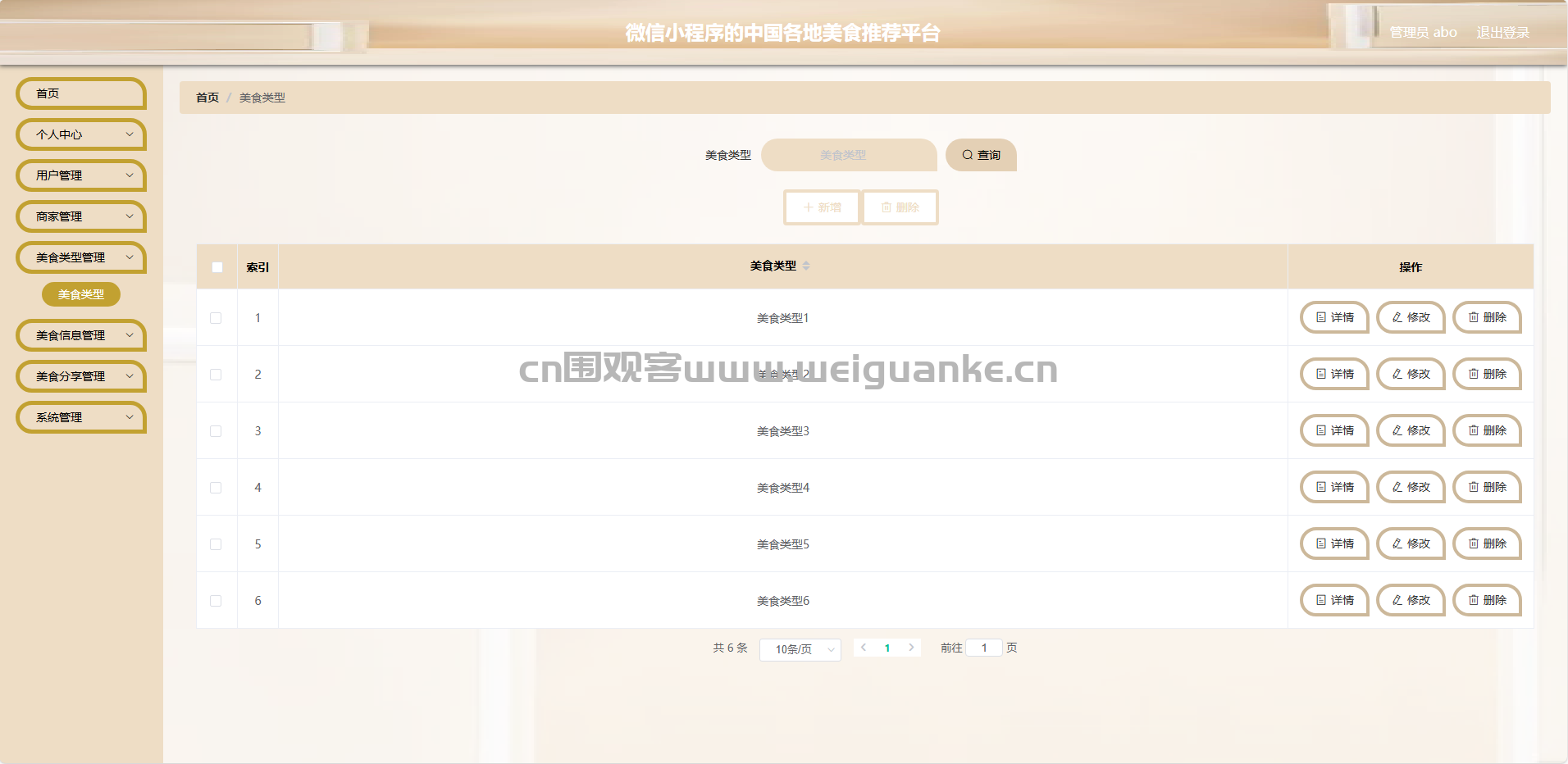 美食类型管理:管理员可以添加、修改、删除美食类型。