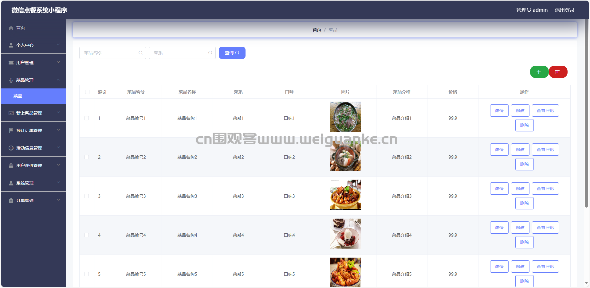 4.菜品管理:查看、新增、编辑、删除菜品信息和评论信息