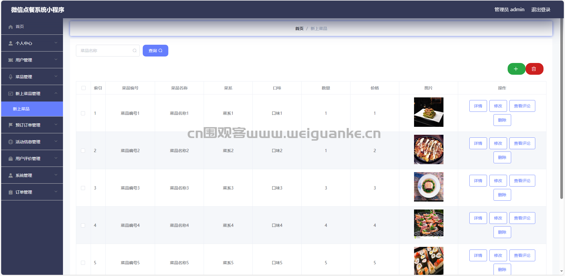 3.新上菜品管理:查看、新增、编辑、删除新上菜品信息和评论信息