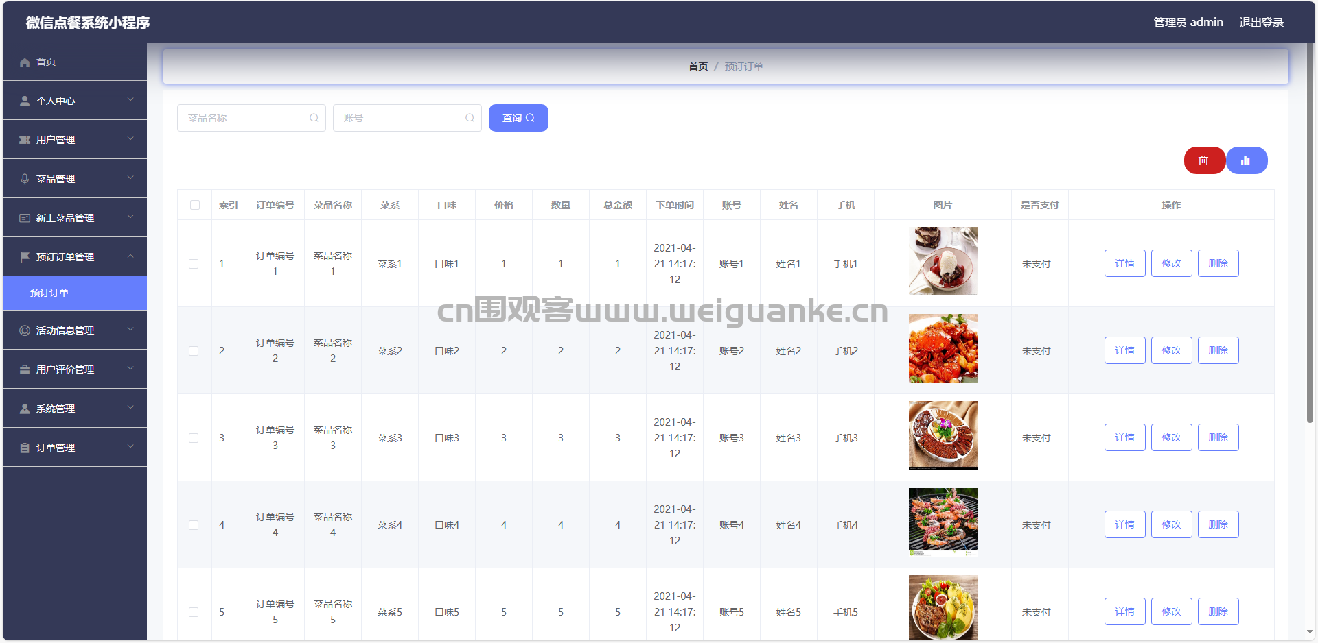 5.预订订单管理:查看、编辑、删除预订订单信息