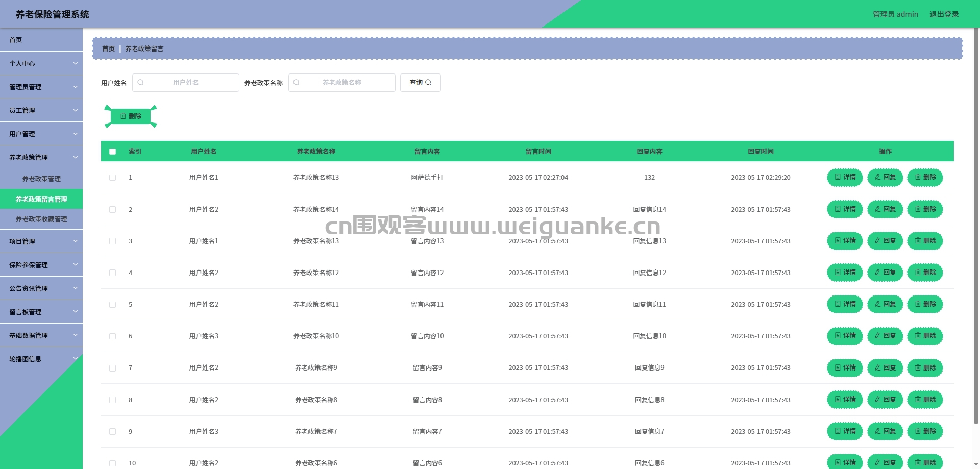 养老政策留言管理:查看和回复用户在养老政策板块的留言