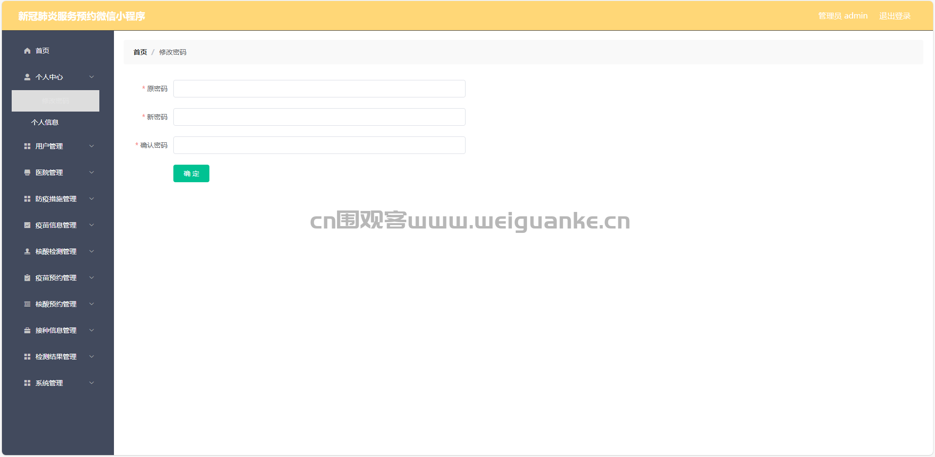 1.个人中心:查看和编辑个人信息,修改登录密码。管理疫苗预约,核酸预约,接种信息,检测结果信息。