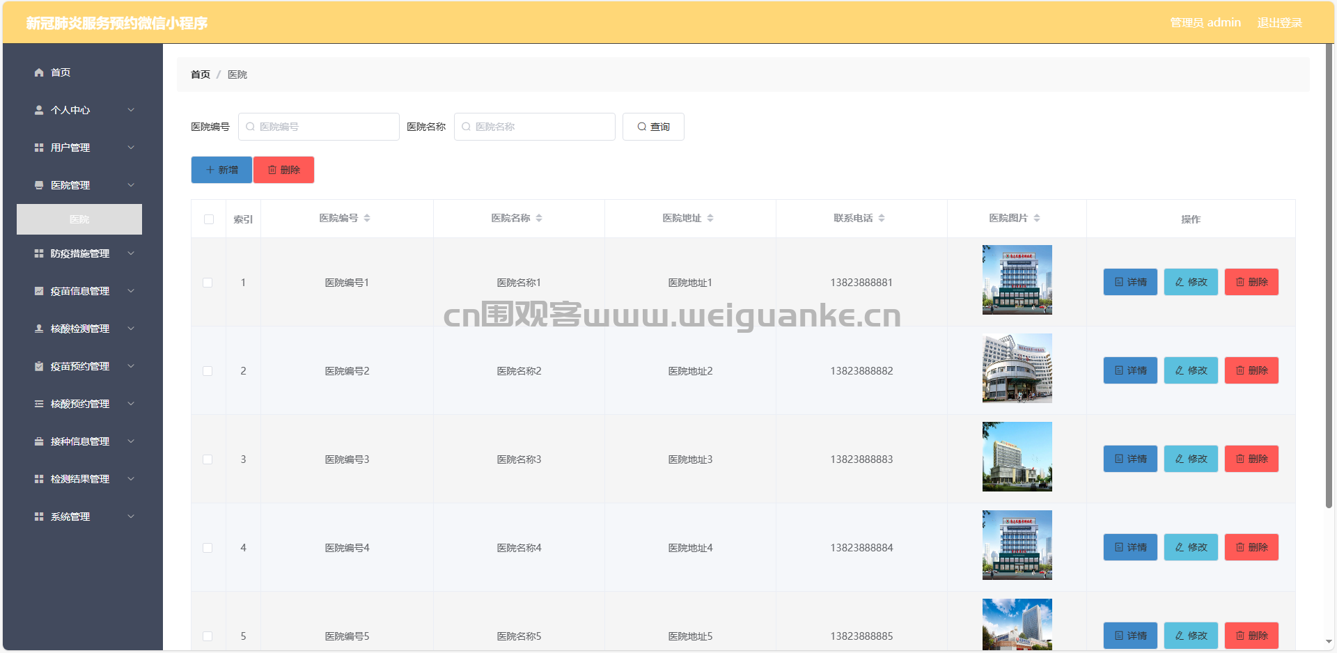 2.医院管理:查看、添加、编辑、删除医院信息