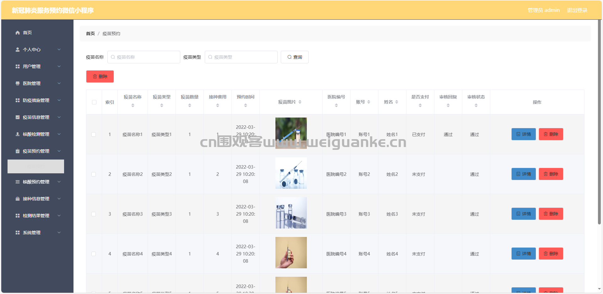7.疫苗预约管理:查看、删除疫苗预约信息
