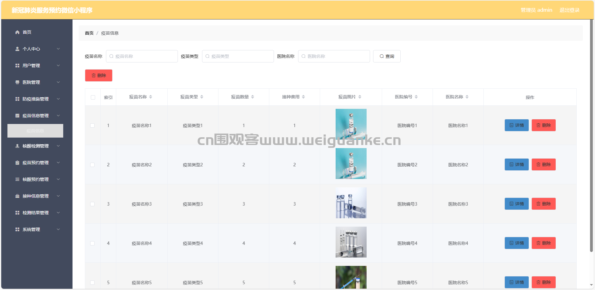 5.疫苗信息管理:查看、删除疫苗信息