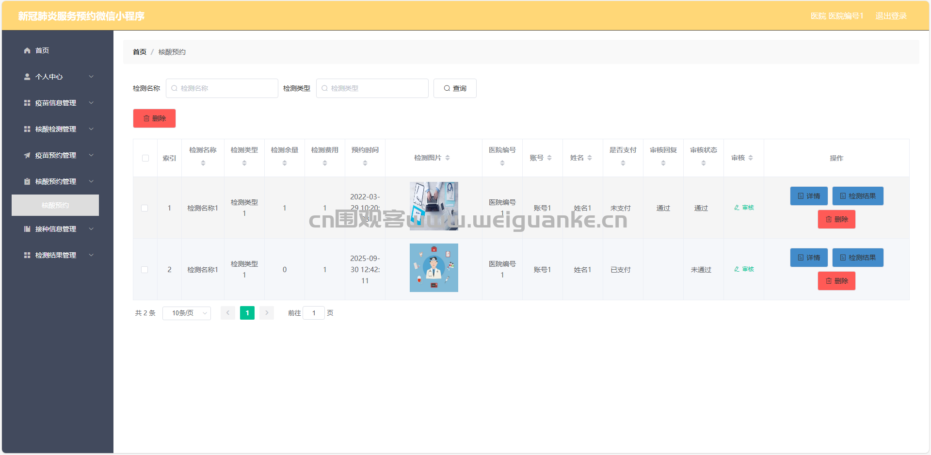5.核酸预约管理:查看、审核、核酸结果、删除核酸预约信息