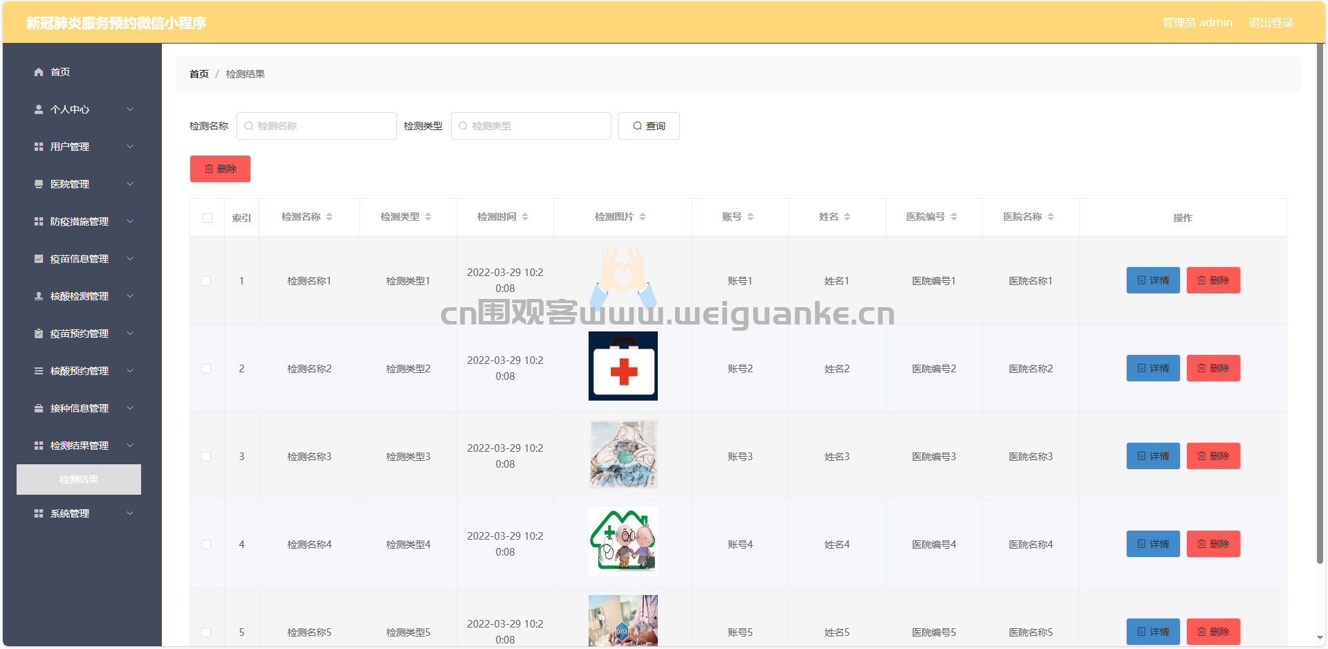6.核酸检测管理:查看、删除核酸检测信息