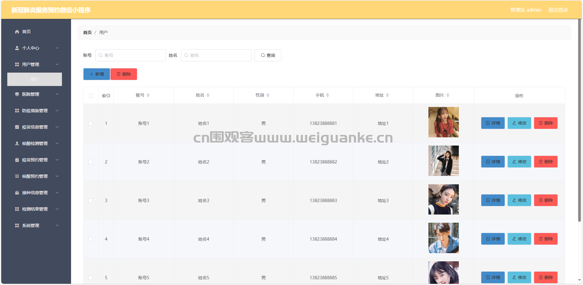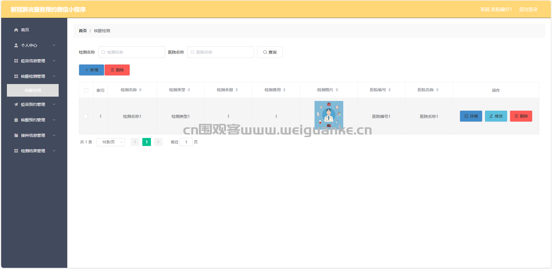 3.核酸检测管理:查看、添加、编辑、删除核酸检测信息