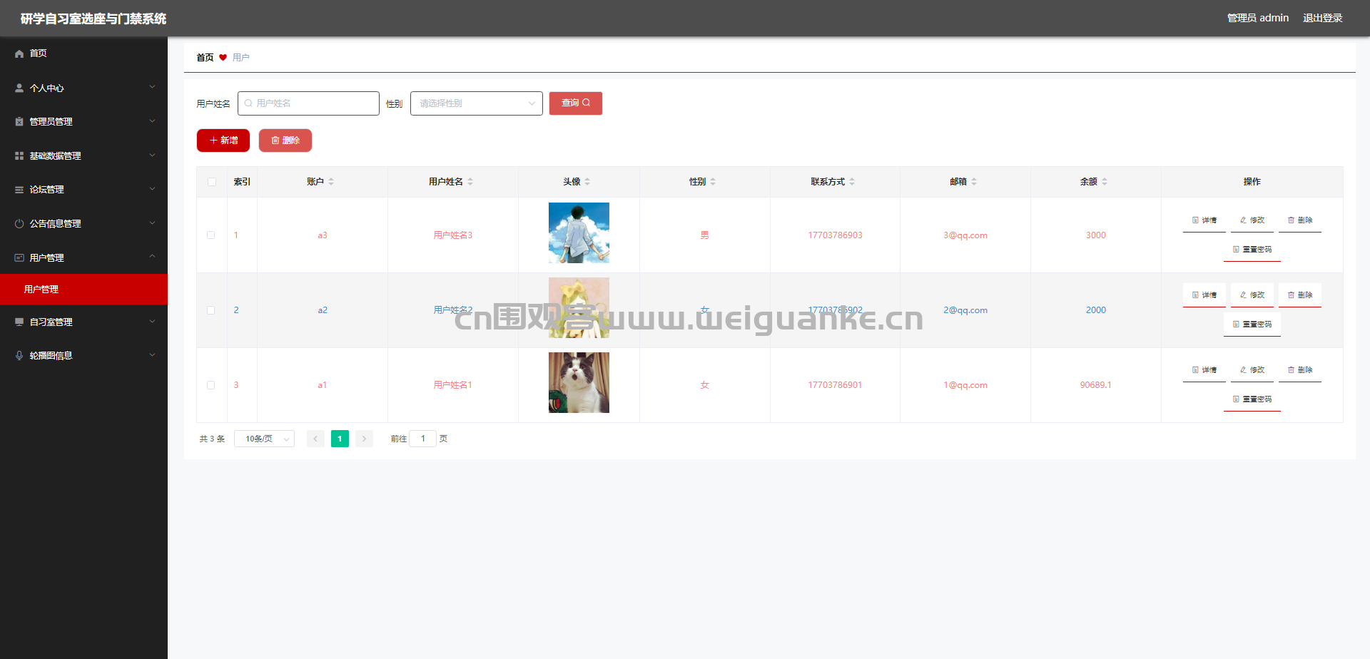 3.管理员管理:查看、新增、编辑、删除管理员信息