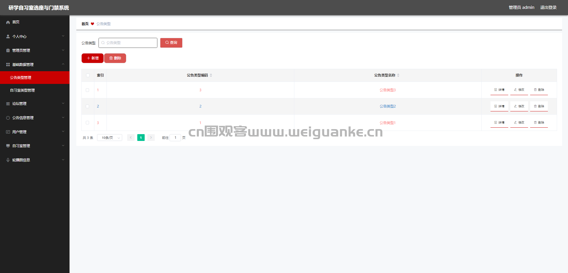 5.自习室类型管理:查看、新增、编辑、删除自习室类型信息