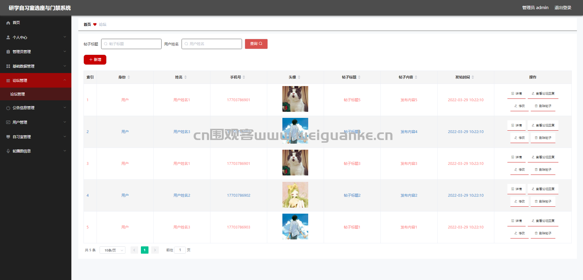 6.自习室管理:查看、新增、编辑、删除产品信息和评论信息