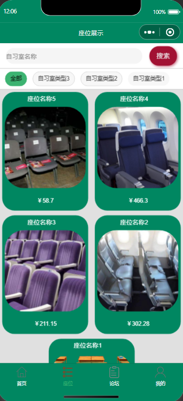 基于springboot,vue,微信小程序的研学自习室选座与门禁系统。通过springboot,vue框架进行开发