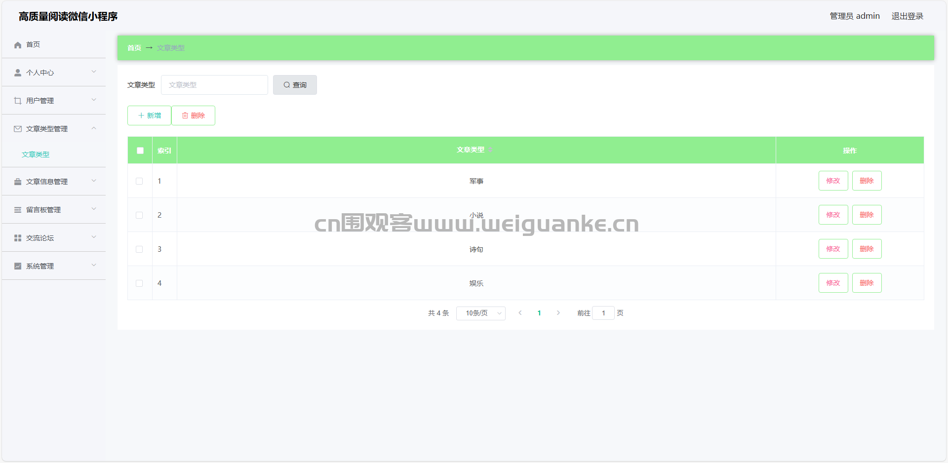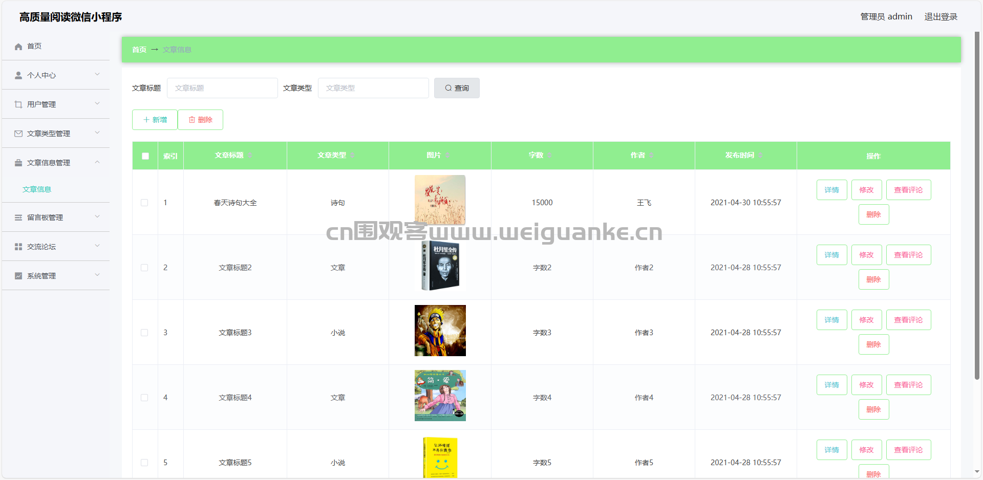 4.文章管理:查看、添加、编辑、删除文章信息和评论信息
