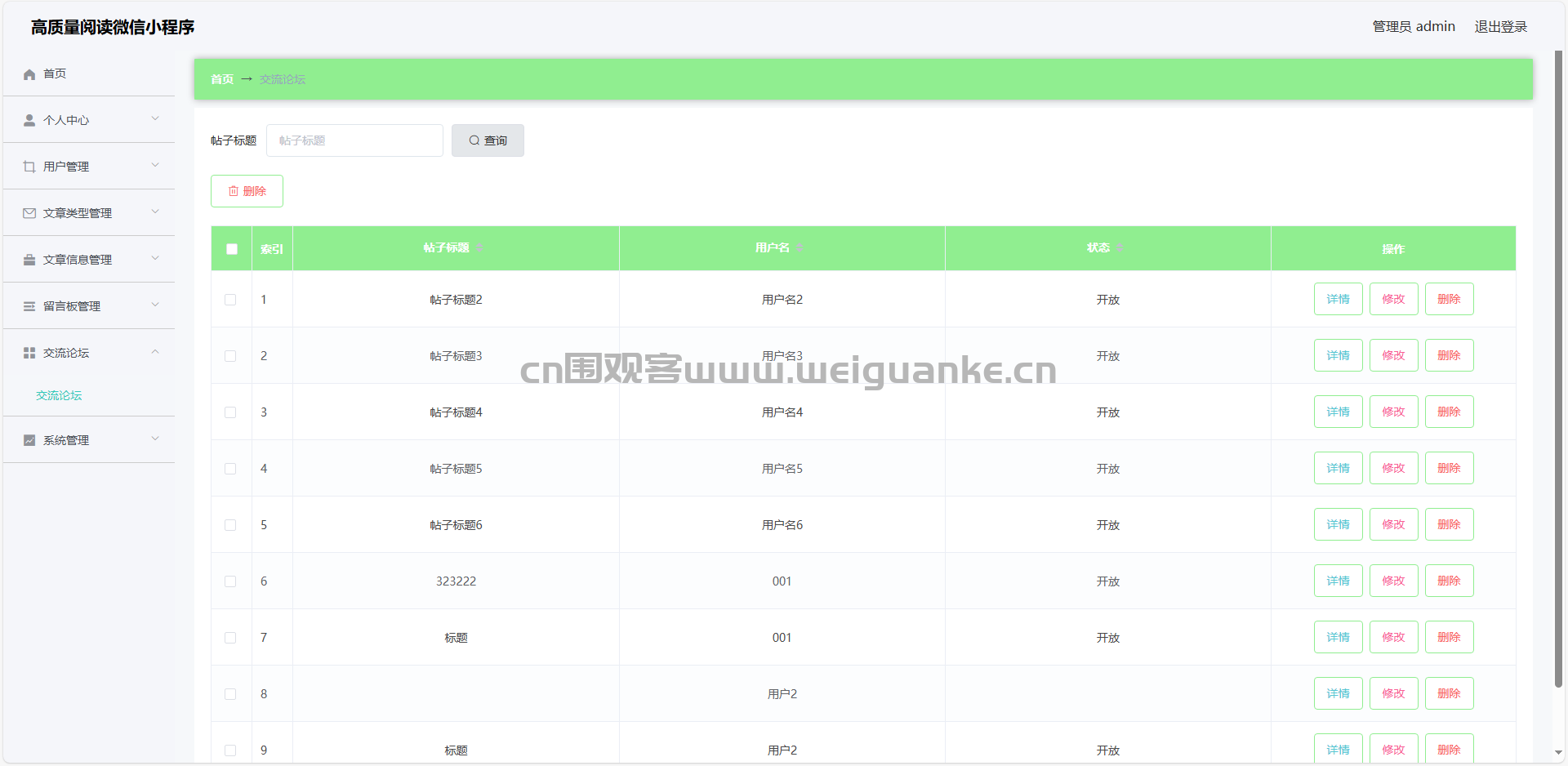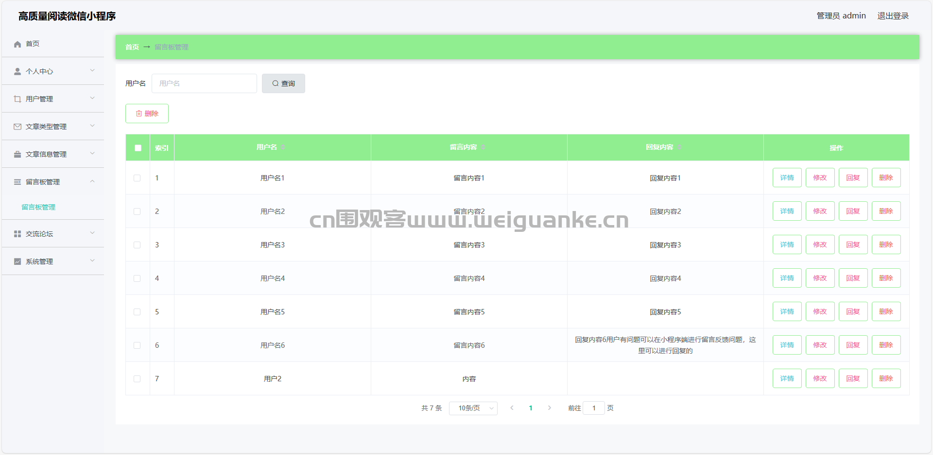 5.留言板管理:查看、回复、编辑、删除留言信息