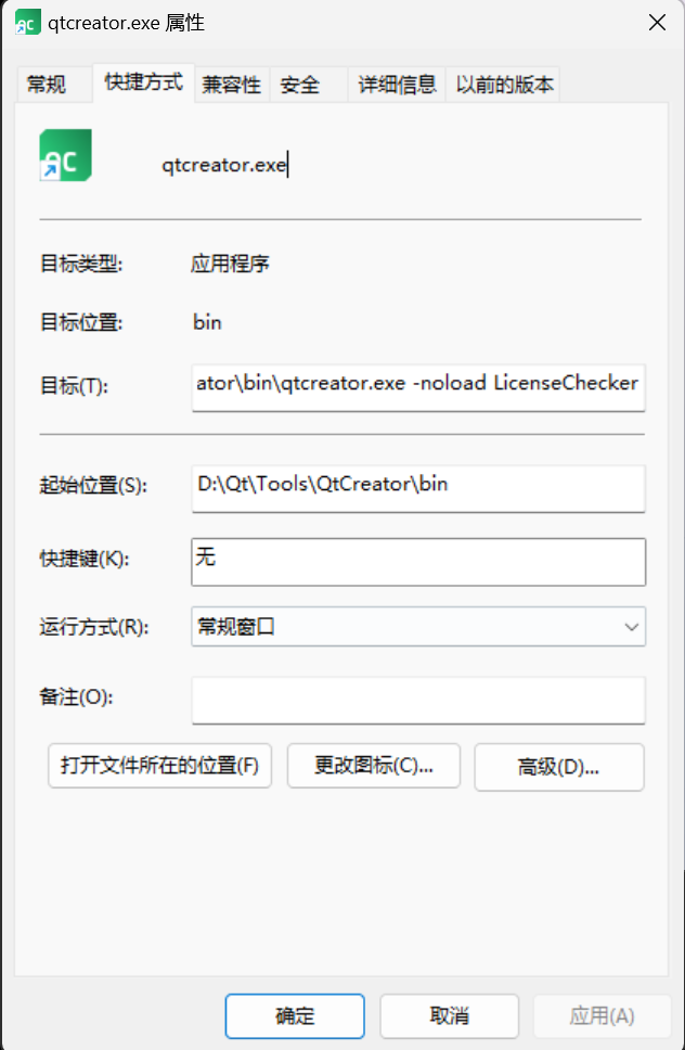 右键点击桌面上的 Qt Creator 快捷方式 → 选择"属性"