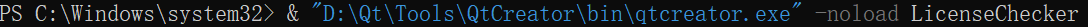 "D:\Qt\Tools\QtCreator\bin\qtcreator.exe" -noload LicenseChecker