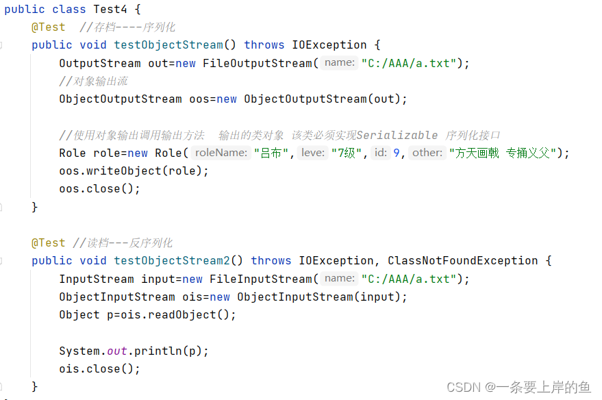 将java对象进行读写操作 意义在于持久化信息 例如: 游戏存档。