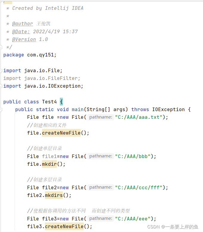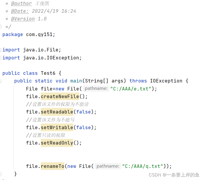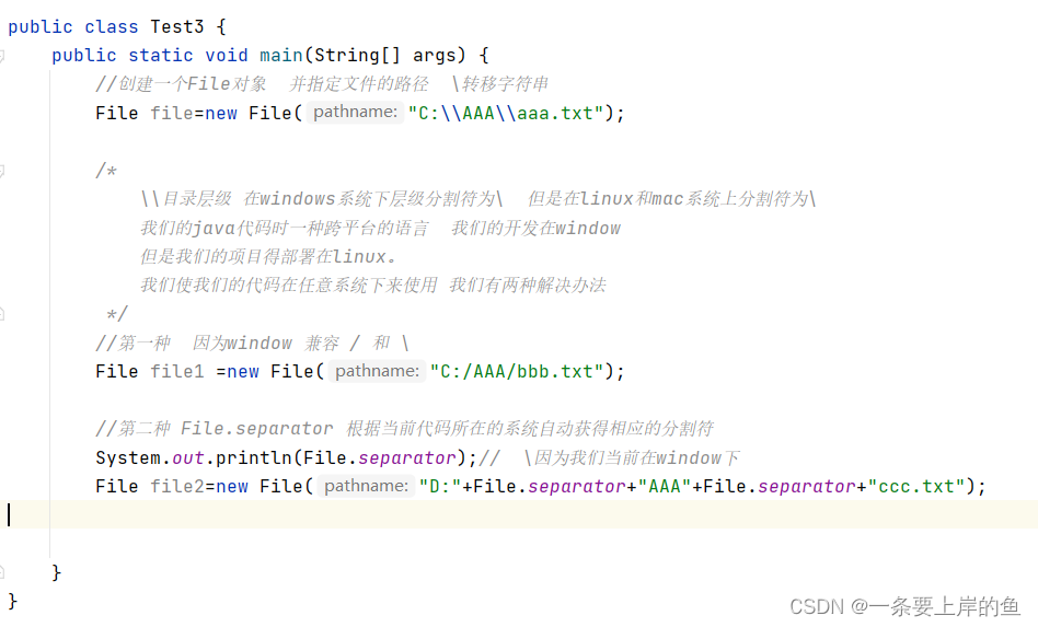 1.创建该类对象时的方法: File file=new File("文件的路径");