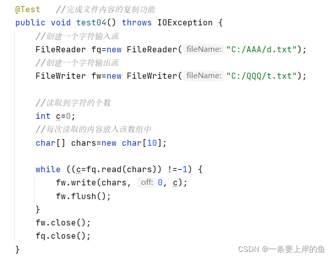 1. 通过字符流完成文件的复制---->它只能复制文本文件