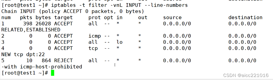 只查看filter表中指定链INPUT的信息 进行编号查看