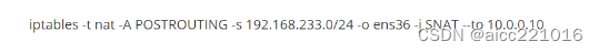 --to 10.0.0.10 所有的ip地址属于233.0这个网段,只要你是从ens出来得,都会把他们的ip地址转换成10.0.0.10