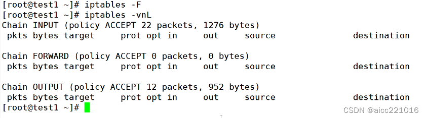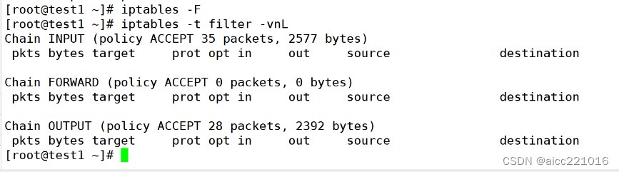 -F:清空指定链当中的规则(慎用)