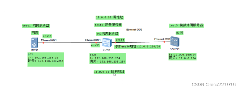 --to 192.168.233.10:80 只要从和ens36这个网络接口进入本机内网的ip地址,访问内网服务http的80端口,目的ip都可以转换成11.0.0.11