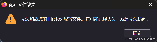 无法加载您的 Firefox 配置文件。 它可能已经丢失,或是无法访问。
