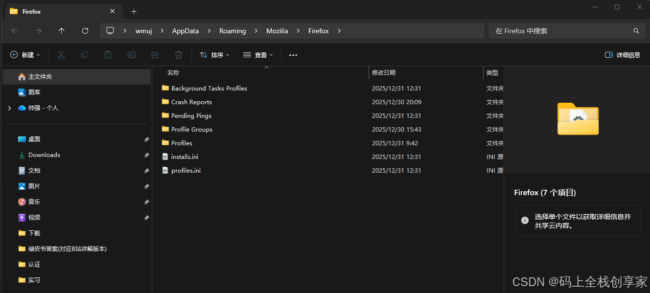 ✔️ 会直接打开 Firefox 的配置目录 ✔️ 不需要一步步点文件夹 ✔️ 官方通用做法