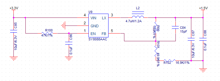 电源没有1.5V输出,然后经过万用表测试,发现1.5V对地短路