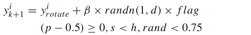fposition(i,:)=pbest(ds(i),:)+1*beta*randn(1,dim)*Flag;% The beta factor limits the step sizes of random walks % Exploration
