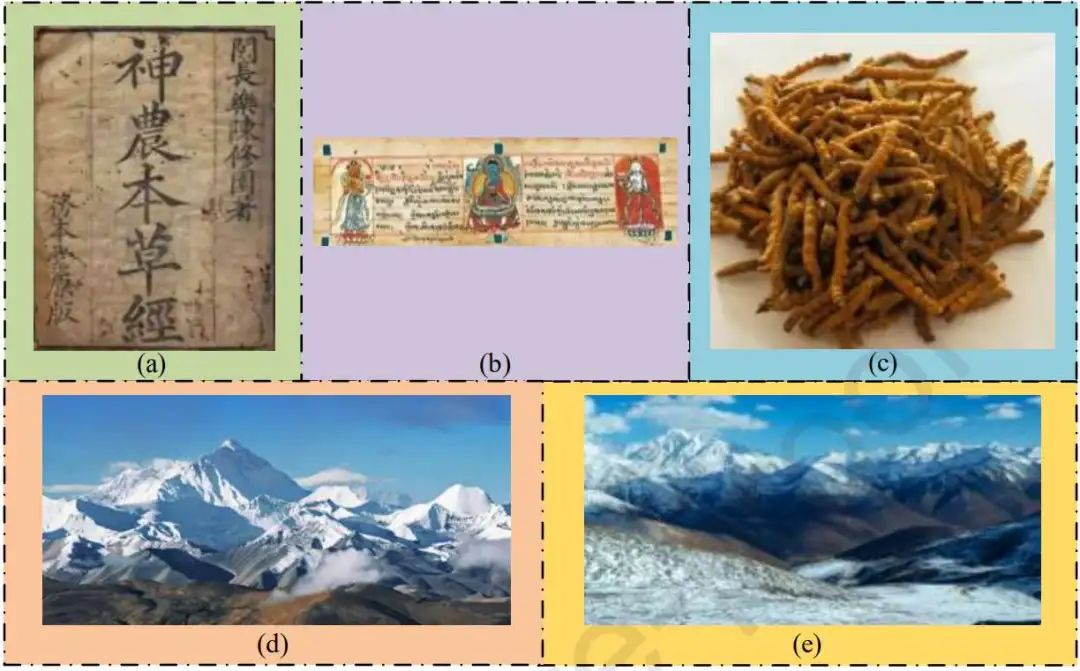 此外,如图所示的唐代《苏摩腊萨》中也记载了虫草的药用价值。在同一历史时期,虫草已在中国广泛应用,并以商品形式传播至亚洲其他地区,如下图所示。