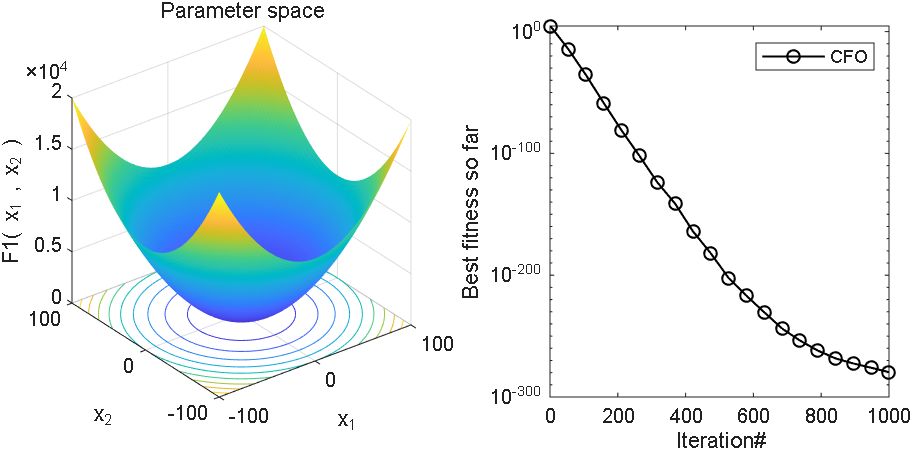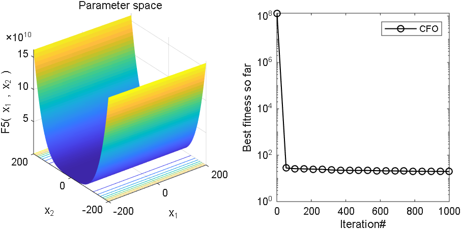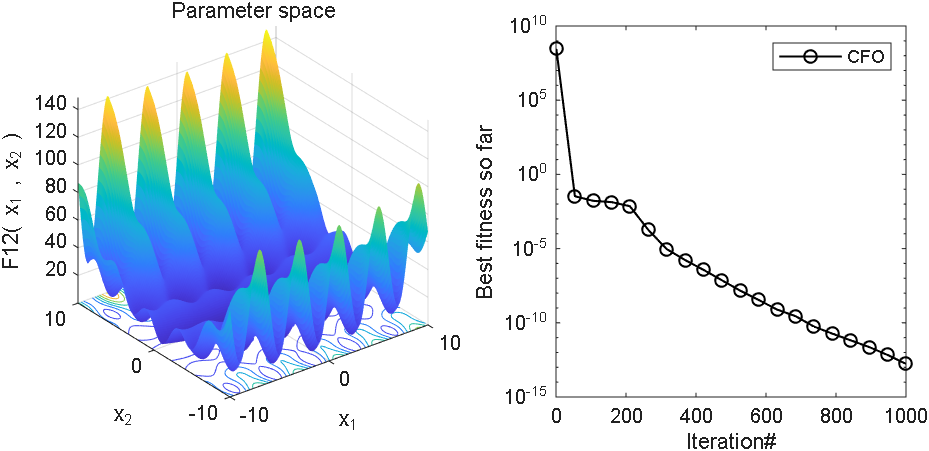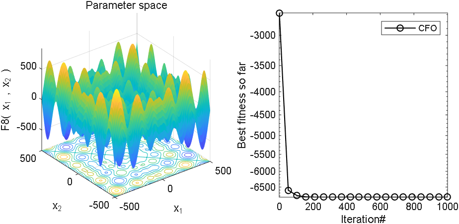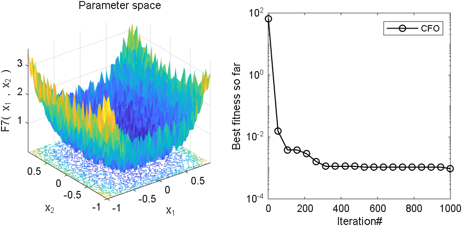 %% ***************************************************************%% Clear spacefunction [BestSolution,BestFitness,Curve]= CFO(Search_Num,Max_Iterations,lb,ub,dimension,func)if numel(lb) ~= dimension lb = repmat(lb,1,dimension); ub = repmat(ub,1,dimension);end%% Create a pre-stored matrix of iteration resultsCurve = zeros(1,Max_Iterations);% BestF =zeros(run_Num,1);% BestS = zeros(run_Num,dimension); %% Pre-allocate variable memory Cordycepes_P = zeros(Search_Num,dimension); Cordycepes_F = zeros(1,Search_Num); %% Initialization for n=1:Search_Num Cordycepes_P(n,:) = (ub-lb).*rand(1,dimension)+lb; Cordycepes_P(n,:) = BoundCheck( Cordycepes_P(n,:), ub, lb); Cordycepes_F(1,n) = func( Cordycepes_P(n,:) ); end %% Single iteration for it=1:Max_Iterations %% Caterpillar fungus main % research_operator [Cordycepes_P,Cordycepes_F] = Exploration_operator( Cordycepes_P, Cordycepes_F, ub, lb, it, Max_Iterations, func); % parasitism_operation [Cordycepes_P,Cordycepes_F] = Parasitization_operation( Cordycepes_P, Cordycepes_F, ub, lb, it, Max_Iterations, func); % Results Save Curve(it)=min(Cordycepes_F); end [BestFitness,index] = min( Cordycepes_F ); BestSolution = Cordycepes_P(index,:);