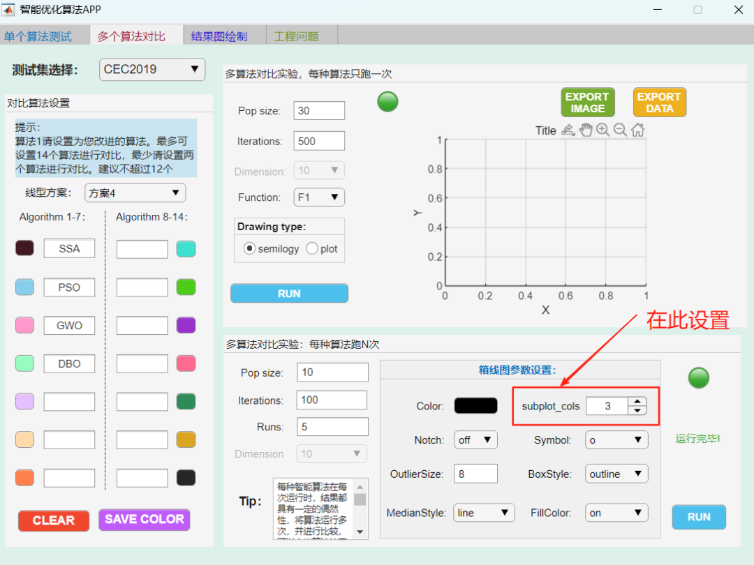 ① 可以自定义每个箱线图子图和平均收敛曲线图子图个数,美化绘图